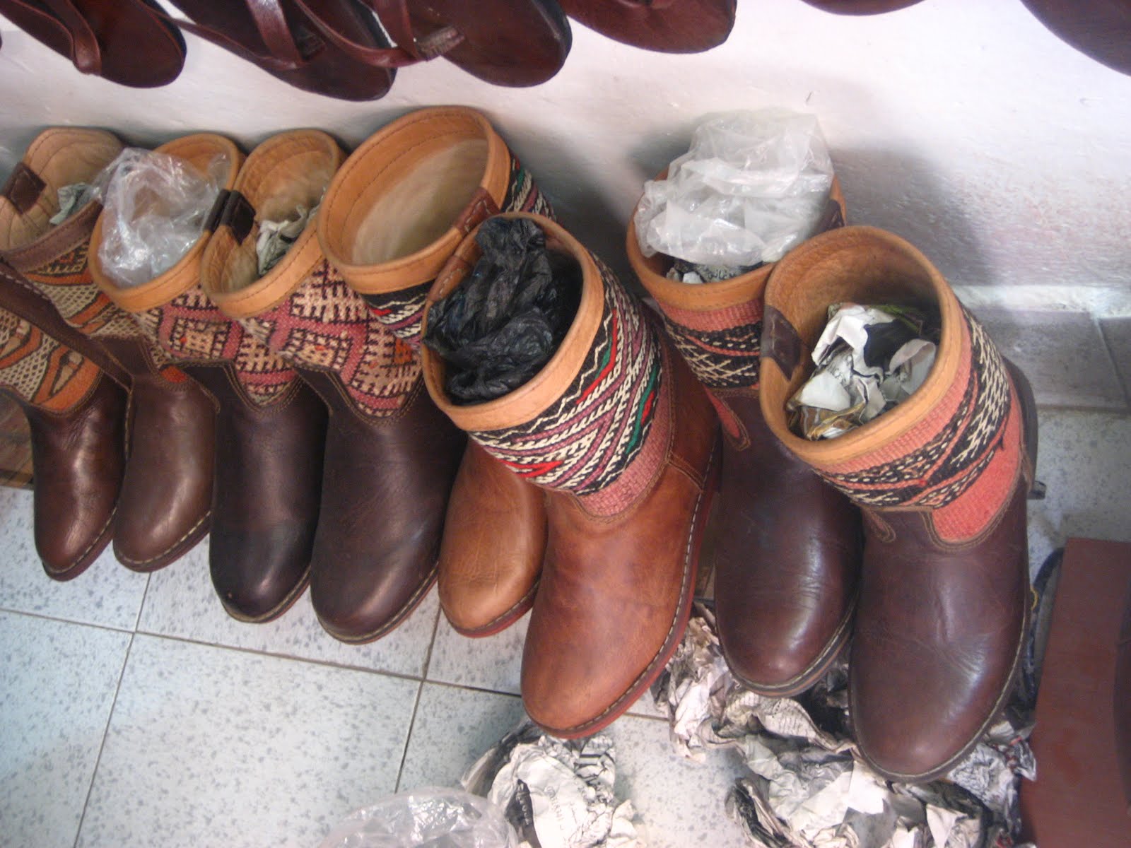 Ik kon op die reis echter geen tapijt kopen omdat ik aan het rondreizen was met een rugzak. Op de laatste dag kwam ik deze laarzen tegen in Marrakech, een oude man maakte ze helemaal zelf met de hand, ik betaalde er (na afdingen) ongeveer 30 euro voor...ik heb dus mijn eigen échte 'kiboots' van Marokko!